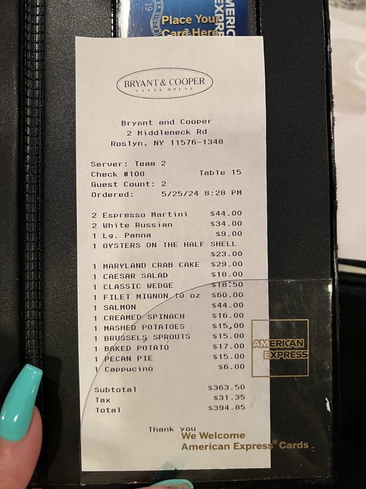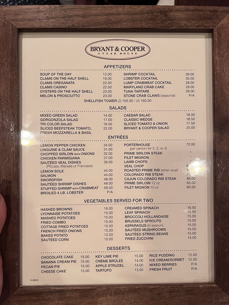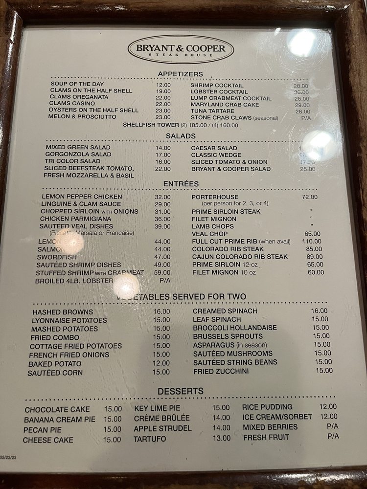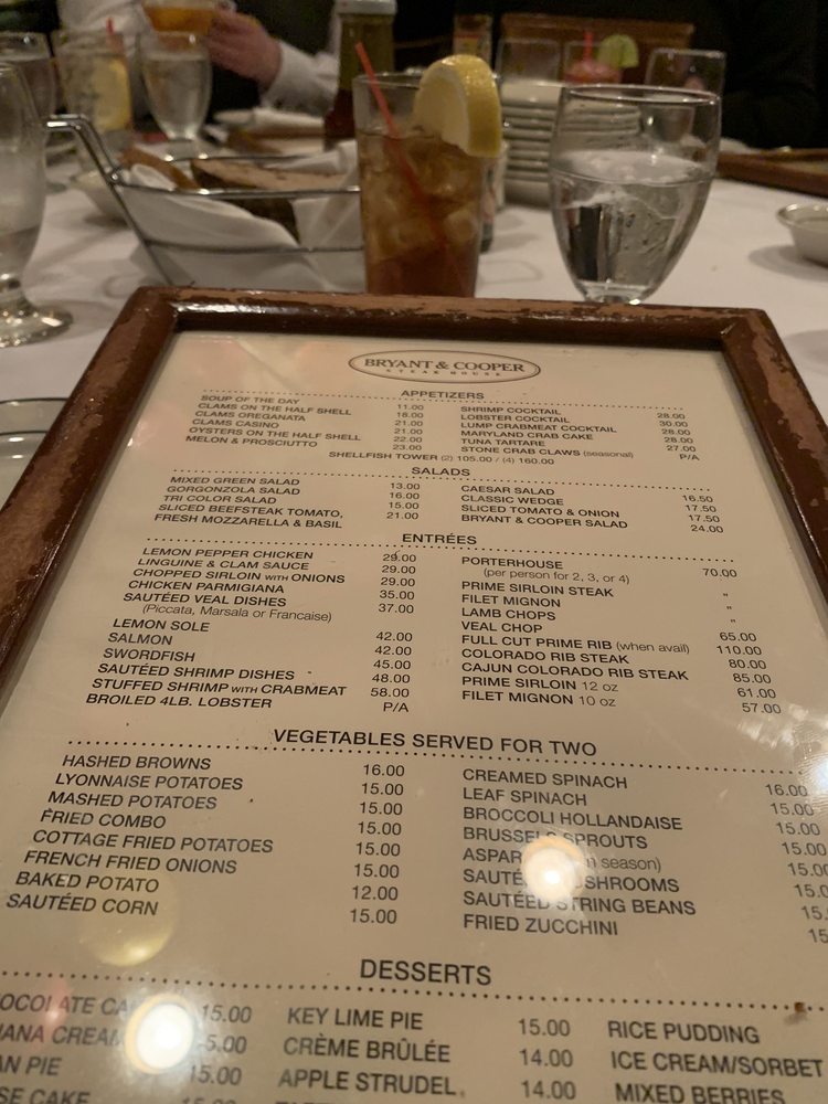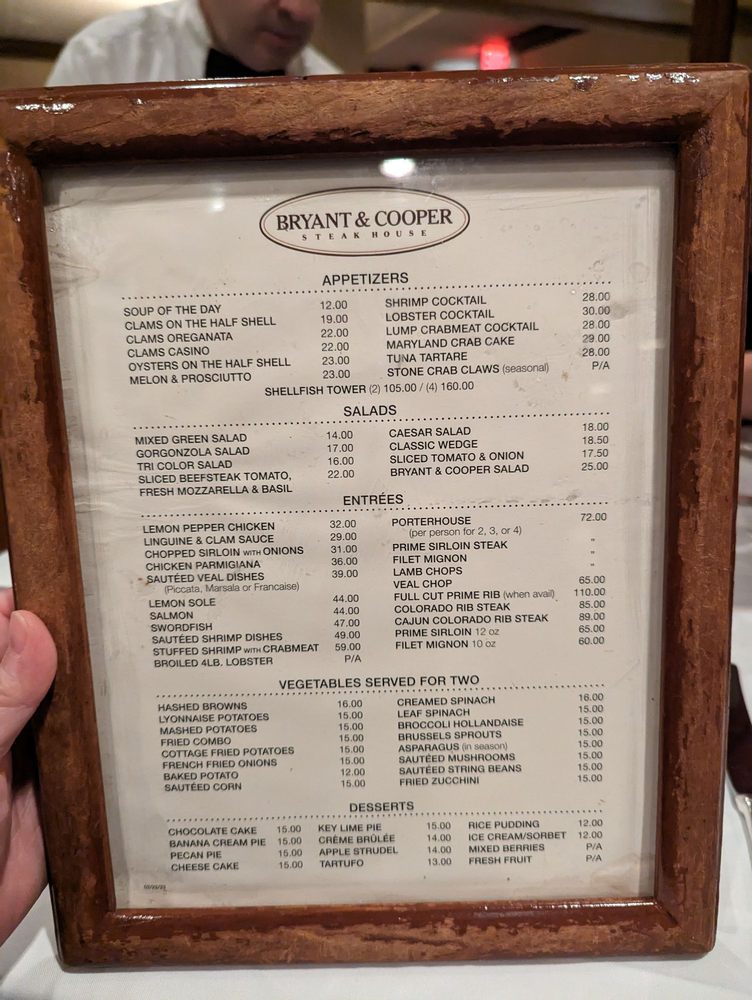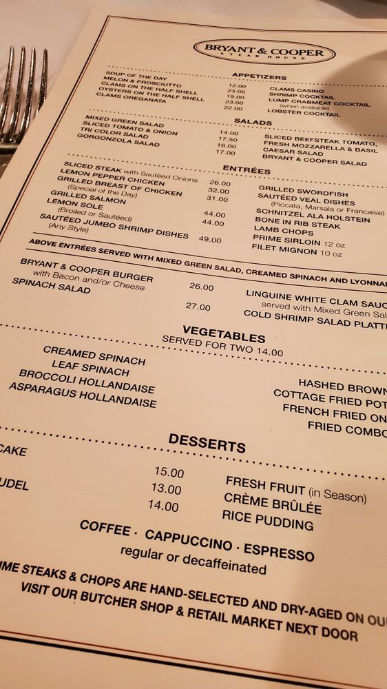 Introducing the menu at Bryant & Cooper Steak House in Roslyn, NY. This upscale steakhouse offers a range of amenities, such as valet parking, classy ambiance, and a full bar. The menu includes dishes like porterhouse steak, roasted prime rib, cajun sole, and tuna tartare. Customers rave about the impeccable service and the perfectly cooked steak and lobster. The equestrian-themed decor adds a unique touch to the dining experience. While some reviewers mention minor delays in service, overall, Bryant & Cooper Steak House stands out for its delicious food and elegant atmosphere. Don't miss the chocolate mousse cake for a sweet ending to your meal. Experience exceptional dining at Bryant & Cooper Steak House.